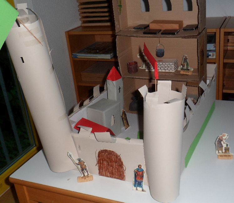Damit Du Dir vorstellen kannst, wie eine Burg in etwa ausgesehen hat, haben wir mal ein Muster gebaut: ![]() Eine Burg kann man sich ein bisschen wie ein kleines Dorf vorstellen, das von einer dicken Schutzmauer umgeben ist. Das Tor zur Burg war zusätzlich durch ein Falltorgitter gesichert, das je nach Bedarf hoch- und runtergelassen werden konnte. ![]() In der Regel gab es Wohngebäude für den Burgherrn und die Bediensteten, Vorratsräume für Lebensmittel, Ställe, eine Schmiede, eine Küche ![]() und meist auch eine Kapelle. ![]() Ein Brunnen war lebensnotwendig in der Burganlage. Nur mit einem Brunnen hatten die Bewohner Trinkwasser und damit die Chance bei einer Belagerung zu überleben. ![]() Wir haben uns bei unserer Burg für die Variante mit dem Wohnturm entschieden: ![]() Hier siehst Du die einzelnen Stockwerke des Wohnturms: Das Vorratslager ![]() Die Küche Hier wird über offenem Feuer gekocht ![]() Der Rittersaal Dort fanden Feste, Verhandlungen und Prozesse statt ![]() Die Kemenate Sie war außer der Küche, das einzige beheizbare Raum und war Aufenthalts- und Schlafraum der Burgfrau. ![]() Nachbasteln der Burg erlaubt! |