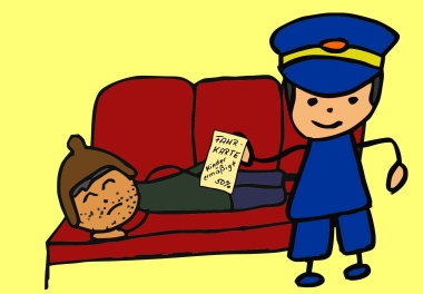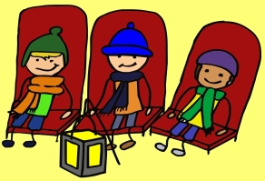 Tim zeigte auf den schlafenden Mann: „Ob der da wohl eine Fahrkarte hat?“ „Wohl kaum!“ meinte Hannes und überlegte laut, ob der Mann wohl rausgeschmissen würde. Bestimmt müsste er auch eine Strafe bezahlen… Aber ob der überhaupt Geld hat? Pauls Blick fiel auf die Hände des Schlafenden. Die sahen eiskalt aus. |